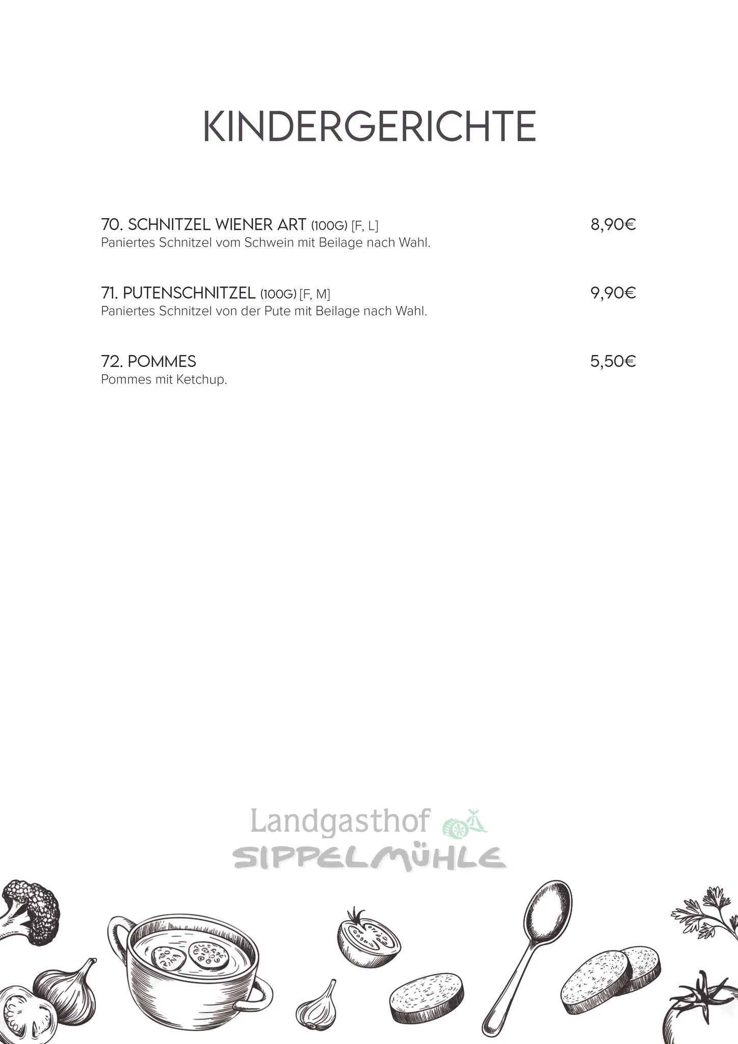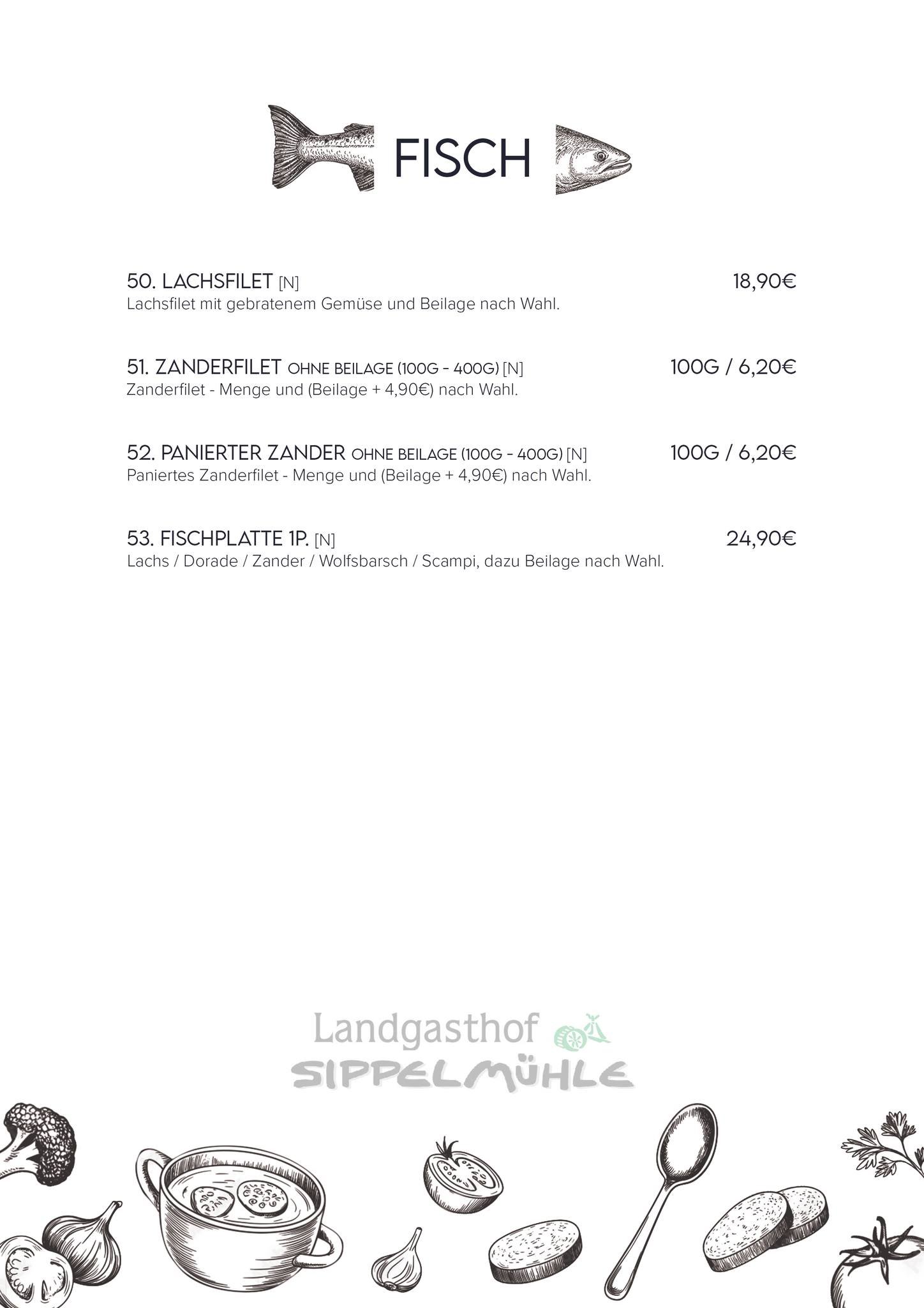 Unsere Küche - Landgasthof Sippelmühle - Speisekarte